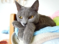 フランス生まれの綺麗なブルー(銀灰色)の毛をもった、シャルトリュー。ロシアンブルー・コラットと並ぶ「ブルー御三家」としても有名です。古くからフランスの家猫として愛されていましたが、美しいブルーの毛皮が高額で売買されていたせいで絶滅の危機に陥ったことも。しかし第二次大戦後、生き残りのシャルトリューとブリティッシュショートヘアを交配し、筋肉質な現在のシャルトリューとなって生まれ変わりました。ちなみに、「ほほ笑み猫」という代名詞や「フランスの宝」、「生きたフランスの記念碑」という呼び名まであるんですよ。